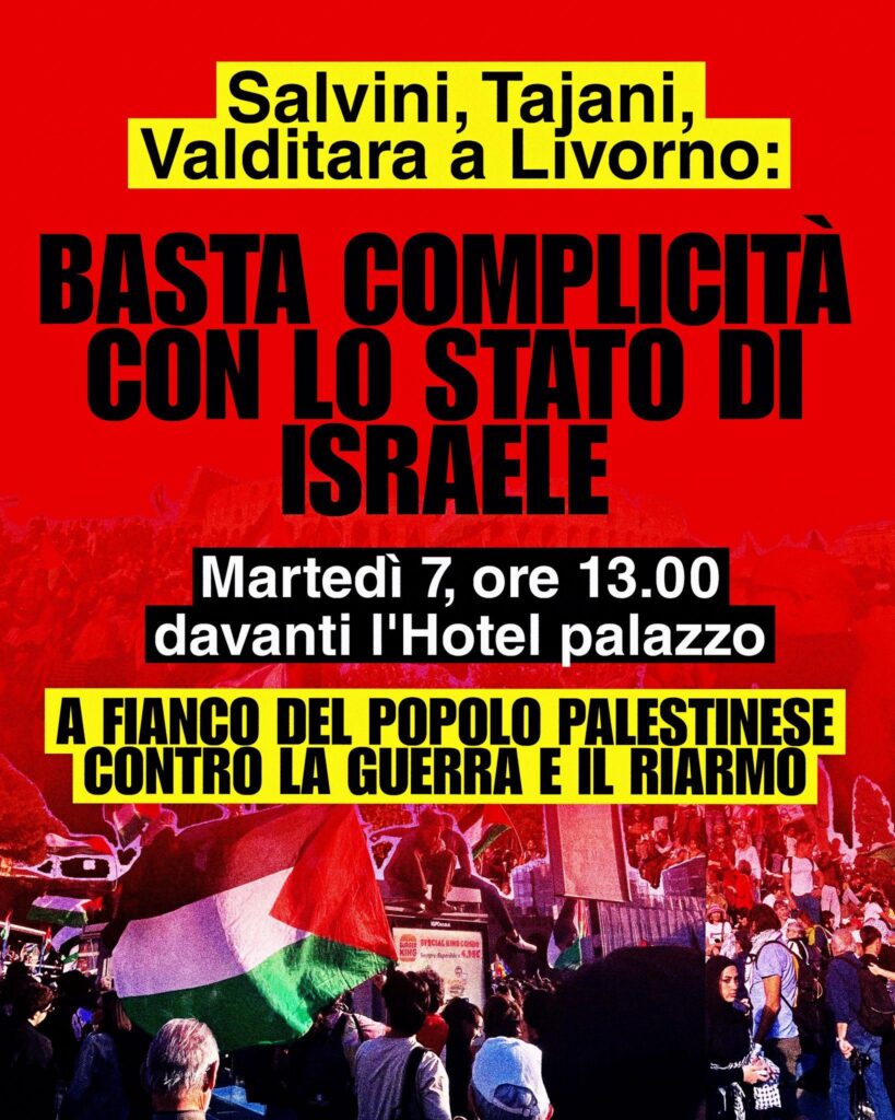 Oggi martedì 7 ottobre i ministri Tajani, Salvini, Valditara, Calderoli, Giorgetti e Locatelli sono a Livorno. Alle 15 nelle all’Hotel Palazzo si terrà una conferenza di Forza Italia a cui interverrà Tajani – online perché evidentemente temeva le proteste – mentre al Palazzo Pancaldi si terrà un incontro della Lega a cui interverrà Salvini con i ministri del suo partito.